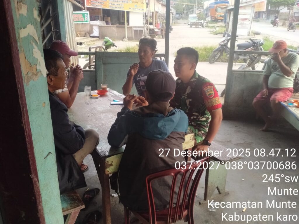 Karo, Jurnaliskaro.com,- Untuk menciptakan situasi yang aman, kondusif dan bersih, Koramil 06 Munte Kodim 0205 Tanah Karo melaksanakan Komunikasi Sosial (Komsos) bersama warga di Desa Munte Kec. Munte, Karo, Sabtu (27/12/2025) siang. Dalam kegiatan tersebut Babinsa Koramil 06 Munte Kopda KR Siregar, melaksanakan komsos dengan masyarakat tetap menjaga ketertiban dan keamanan. Dan tidak terpengaruh […]