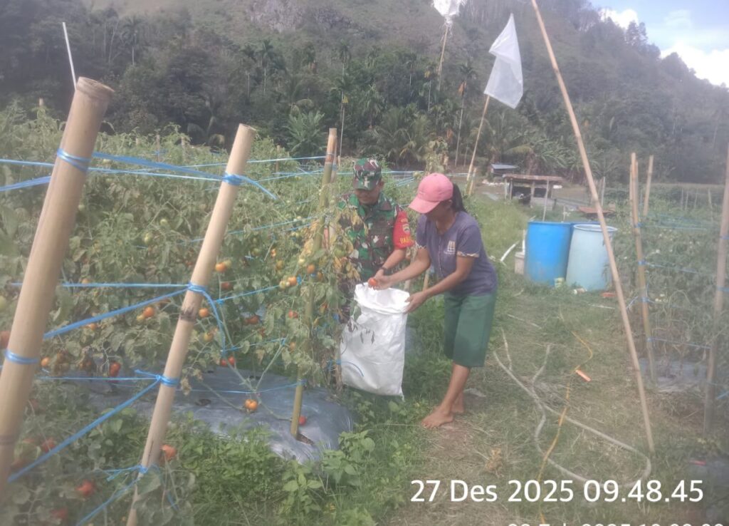 Koramil 08 Tiga Binanga Komsos Bersama Petani Panen Buah Tomat