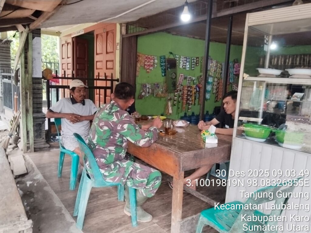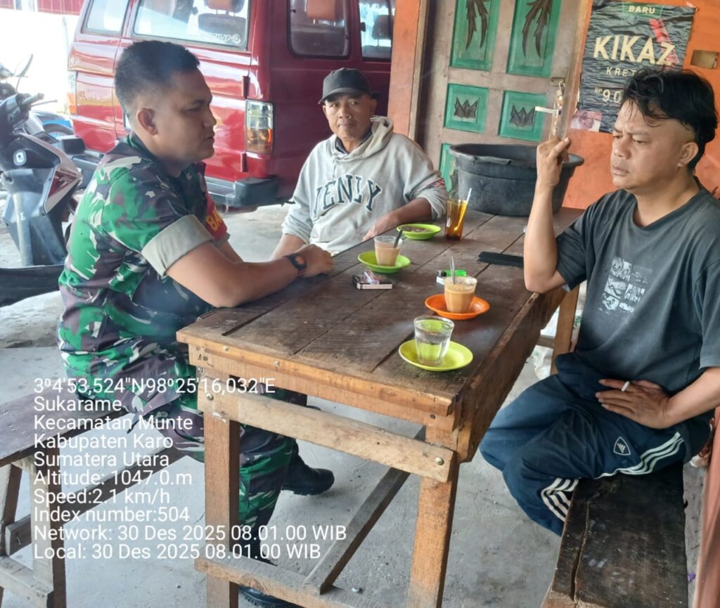 Koramil 09 Lau Baleng Komsos Bersama Warga Imbau Jaga Ketertiban dan Keamanan Lingkungan
