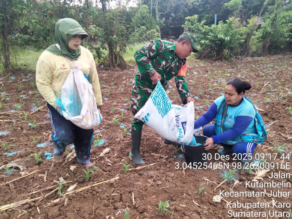 Dukung Ketahanan Pangan Koramil 07 Juhar Giat Pemupukan Tanaman Jagung Bersama Petani