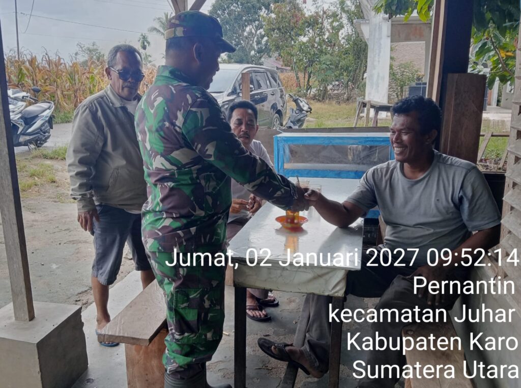 Koramil 07 Juhar Komsos Bersama Warga Imbau Jaga Kekompakan dan Ketertiban