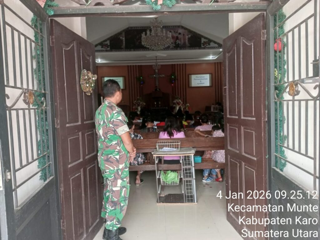 Karo, Jurnaliskaro.com,- Untuk menciptakan suasana yang nyaman dan aman selama beribadah, Babinsa Koramil 07 Juhar Kodim 0205 Tanah Karo, melaksanakan kegiatan pengamanan kegiatan ibadah di gereja GPDI di Desa Juhar Perangin angin Kec. Juhar, Kab. Karo, Minggu (04/01/2026) pagi. Babinsa Koramil 07 Juhar Serda Iwan Sinaga, menjelaskan pengamanan ini agar masyarakat yang sedang melaksanakan […]