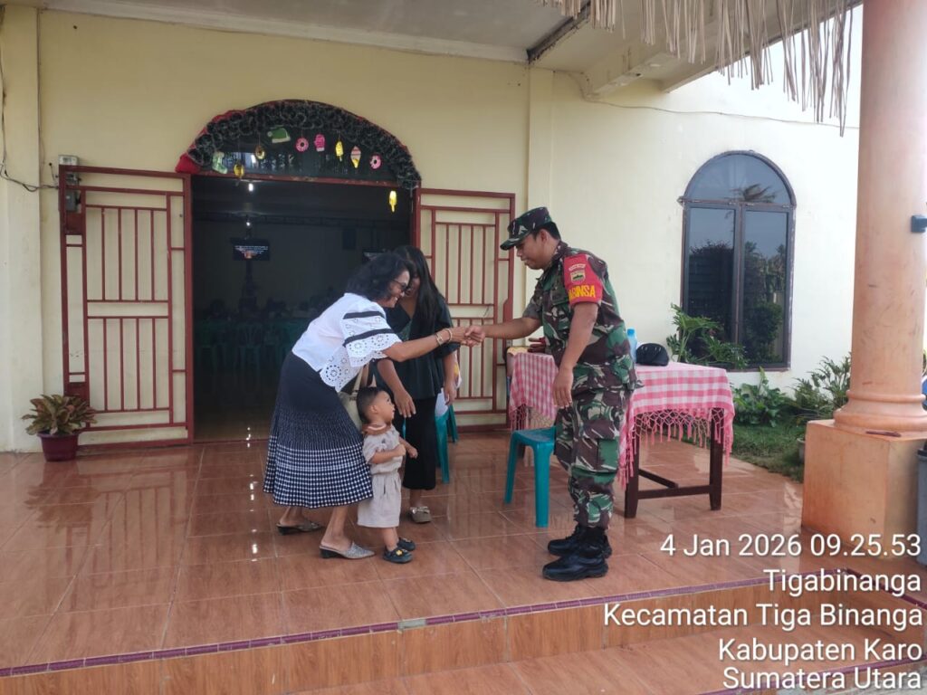 Karo, Jurnaliskaro.com,- Untuk menciptakan suasana yang nyaman dan aman selama beribadah, Babinsa Koramil 08 Tiga Binanga Kodim 0205 Tanah Karo, bersama dengan personil Babinsa yang lain, melaksanakan kegiatan pengamanan kegiatan ibadah di gereja GBI di Kel. Tiga Binanga Kec. Tiga Binanga, Kab. Karo, Minggu (04/01/2026) pagi. Babinsa Koramil 08 Tiga Binanga Sertu M. Rizky […]