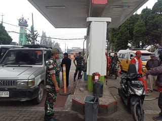 Babinsa Koramil 03 Berastagi Pantau Pengamanan Pengisian BBM di SPBU di Tugu Perjuangan Berastagi