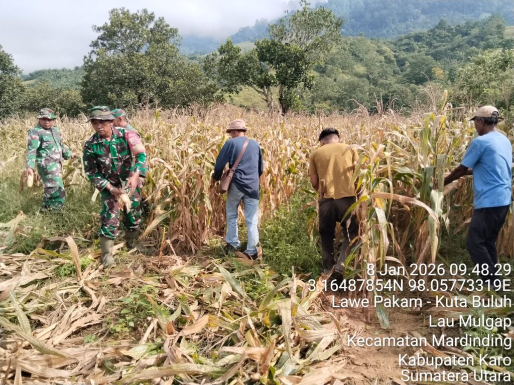 Dukung Ketahanan Pangan Babinsa Koramil 09 Lau Baleng Bantu Petani Panen Jagung