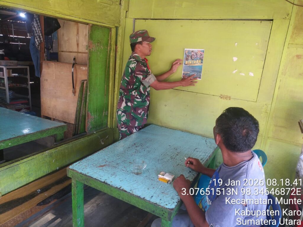 Karo, Jurnaliskaro.com,- Koramil 06 Munte Kodim 0205 Tanah Karo melaksanakan kegiatan Komsos sekaligus memberikan sosialisasi tentang Penerimaan atau perekrutan TNI AD kepada warga di Desa Munte Kec. Munte, Kab. Karo, Senin (19/01/2026) pagi. Menurut Babinsa Koramil 06 Munte Serka Samsuri, kegiatan ini adalah kegiatan komsos dengan warga untuk pemasangan brosur dan sosialisasi bergabung sebagai […]