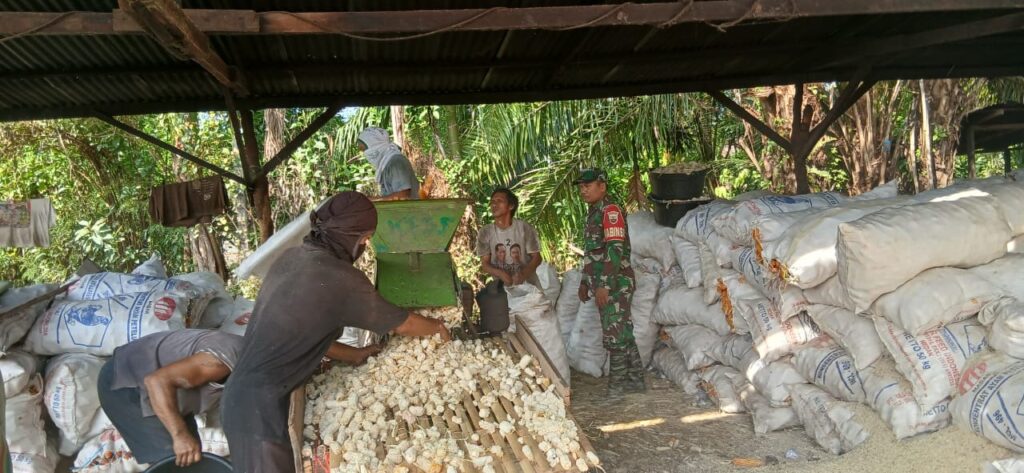 Dukung Ketahanan Pangan Koramil 07 Juhar Bantu Petani Penggilingan Jagung