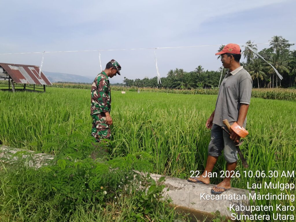 Koramil 09 Lau Baleng Komsos Bersama Petani Pengecekan dan Perawatan Padi