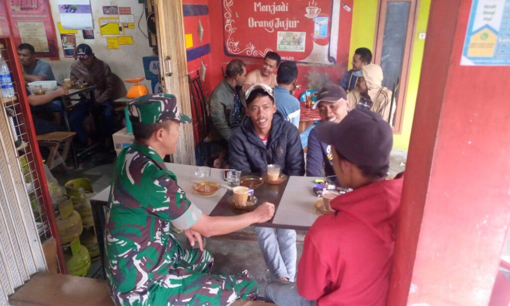 Babinsa Koramil 06 Munte Komsos Bersama Warga Imbau Jaga Kerukunan Hidup Beragama di Lingkungan Desa