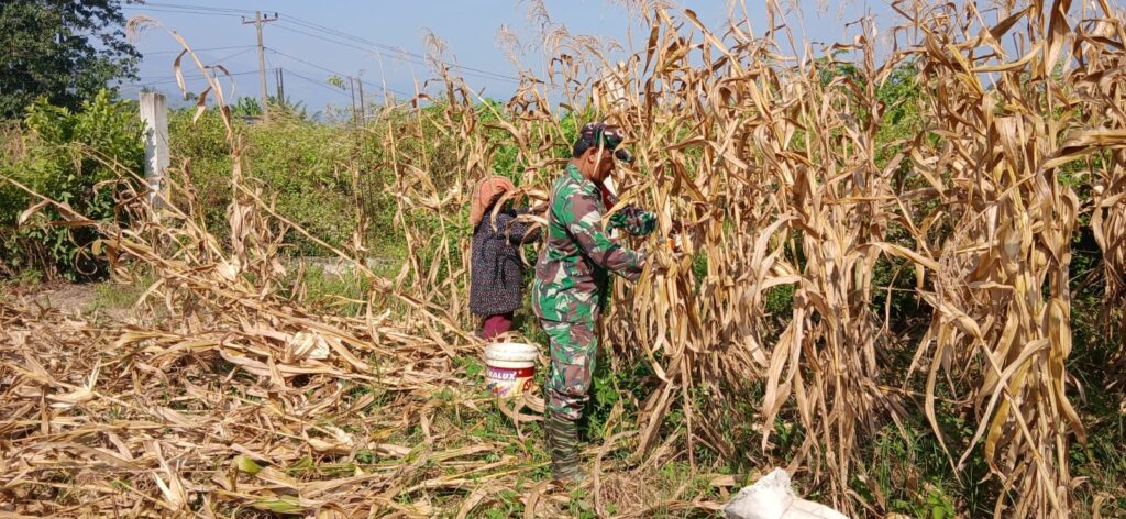Dukung Ketahanan Pangan Babinsa Koramil 09 Lau Baleng Bantu Petani Panen Jagung