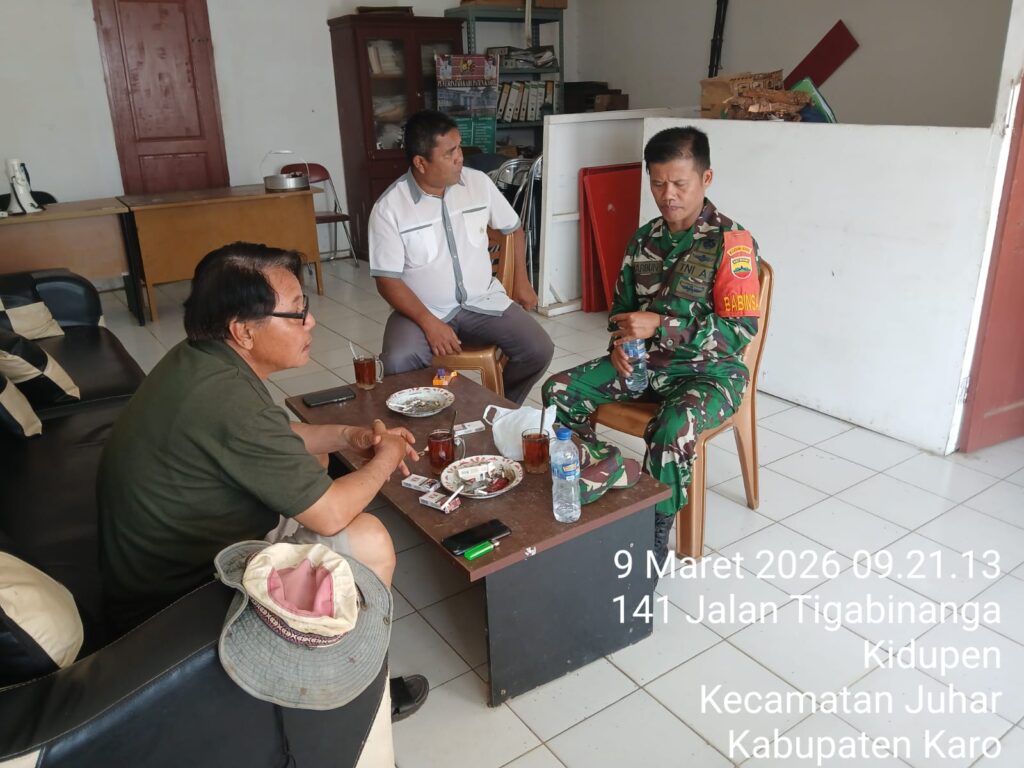 Karo, Jurnaliskaro.com,- Untuk menciptakan situasi yang aman, Koramil 07 Juhar Kodim 0205 Tanah Karo melaksanakan Komunikasi Sosial (Komsos) di Kantor Desa Kidupen Kec. Juhar, Senin (09/03/2026) siang. Dalam kegiatan tersebut Babinsa Koramil 07 Juhar Serda LR Lumban Batu, melaksanakan komsos bersama dengan perangkat desa terkait pelayanan kepada warga. Dimana menurutnya aparatur perangkat desa harus […]