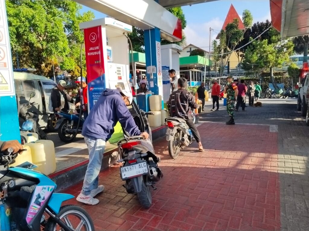 Babinsa Koramil 03 Berastagi Pantau Pengamanan Pengisian BBM di SPBU di Tugu Perjuangan Berastagi