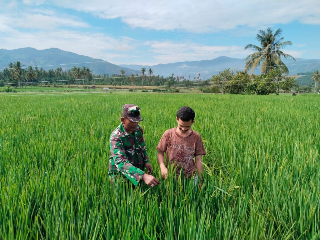 Koramil 09 Lau Baleng Komsos Bersama Petani Pengecekan dan Perawatan Padi