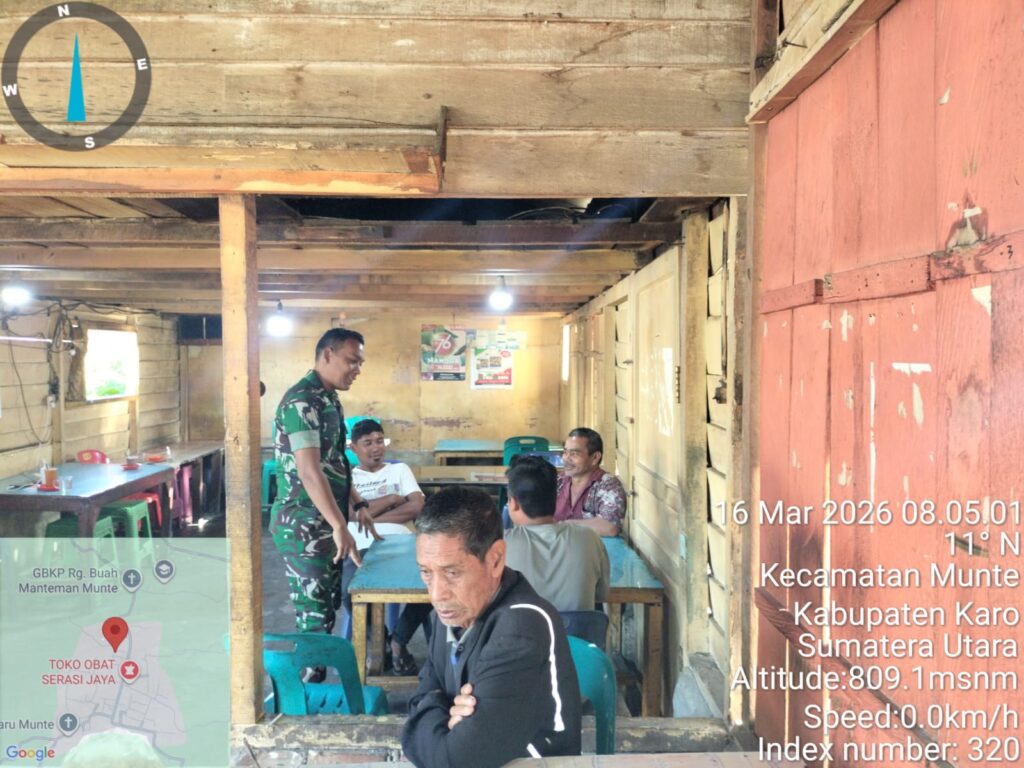 Karo, Jurnaliskaro.com,- Untuk menciptakan situasi yang aman, kondusif dan bersih, Koramil 06 Munte Kodim 0205 Tanah Karo melaksanakan Komunikasi Sosial (Komsos) bersama warga di Desa Munte Kec. Munte, Karo, Senin (16/03/2026) siang. Dalam kegiatan tersebut Babinsa Koramil 06 Munte Serda SK Pakpahan, melaksanakan komsos dengan masyarakat tetap menjaga ketertiban dan keamanan. Dan tidak terpengaruh […]