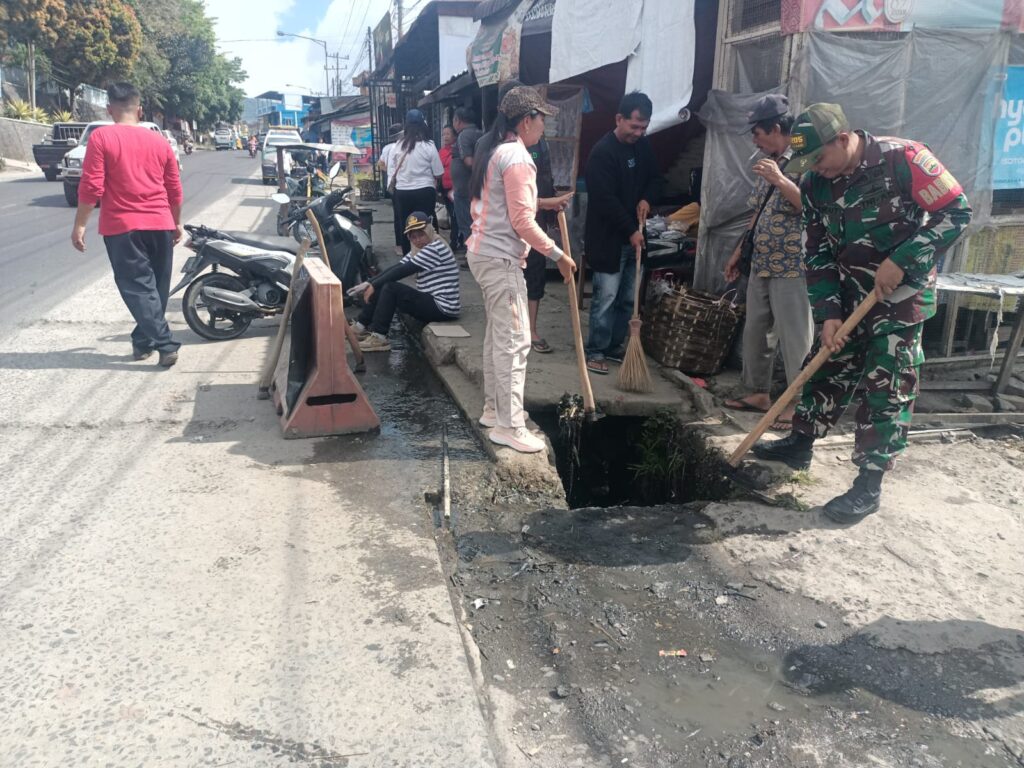 Koramil 03 Berastagi Bersama Warga Gotong Royong Bersihkan Lingkungan