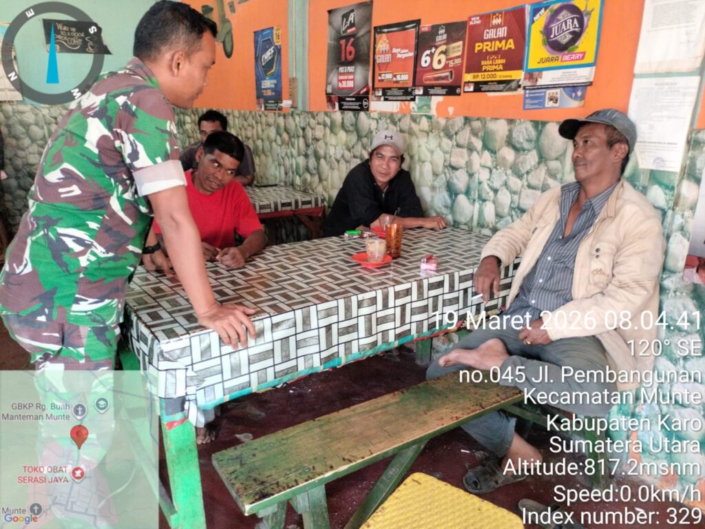Karo, Jurnaliskaro.com,- Untuk menciptakan situasi yang aman, kondusif dan bersih, Koramil 06 Munte Kodim 0205 Tanah Karo melaksanakan Komunikasi Sosial (Komsos) bersama warga di Desa Munte Kec. Munte, Karo, Kamis (19/03/2026) siang. Dalam kegiatan tersebut Babinsa Koramil 06 Munte Serda SK Pakpahan, melaksanakan komsos dengan masyarakat tetap menjaga ketertiban dan keamanan. Dan tidak terpengaruh […]
