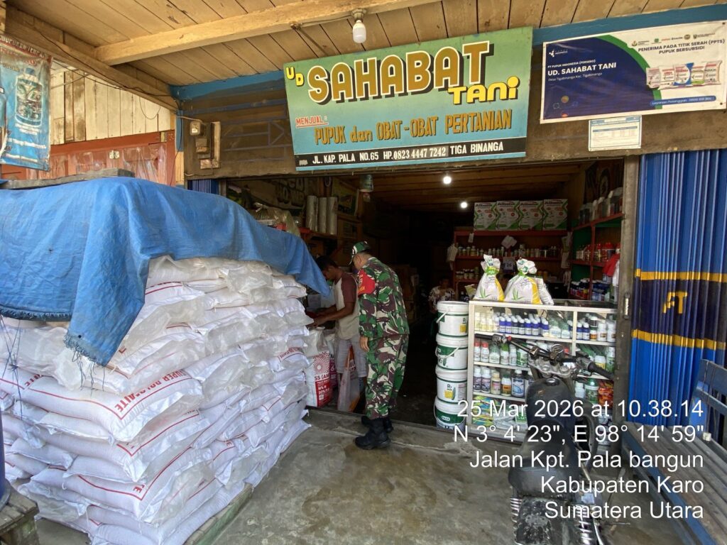 Babinsa Koramil 07 Juhar Monitoring Ketersediaan Pupuk Bersubsidi dan Obat Tanaman