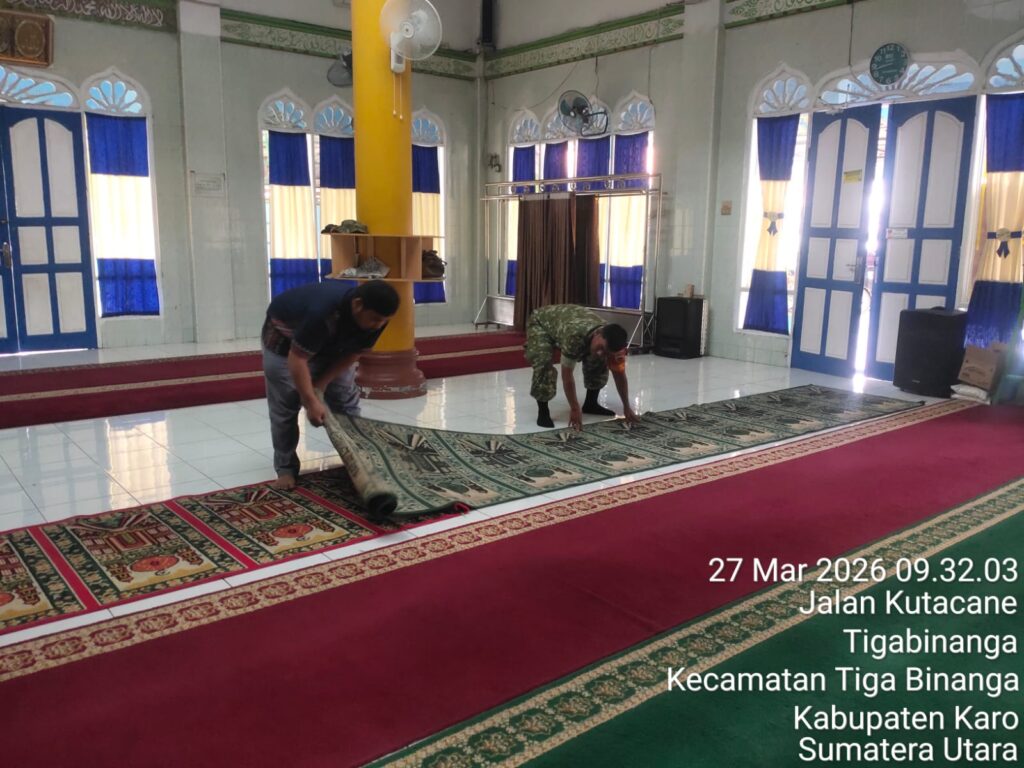 Karo, Jurnaliskaro.com,- Ciptakan lingkungan yang nyaman, bersih dan sehat, Koramil 08 Tiga Binanga Kodim 0205 Tanah Karo bersama masyarakat melaksanakan kegiatan bersih bersih Mesjid Istiqomah di Kel. Tiga Binanga Kec. Tiga Binanga, Jumat (27/03/2026) pagi. Babinsa Koramil 08 Tiga Binanga Sertu M. Rizky Nasution, bersama dengan masyarakat melaksanakan kebersihan Mesjid sebelum sholat Jumat. “Giat […]