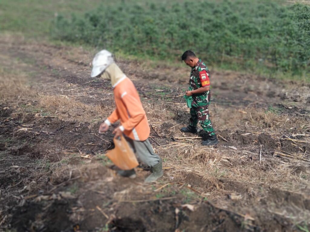 Dukung Ketahanan Pangan Koramil 06 Munte Giat Penanaman Bibit Jagung Bersama Petani