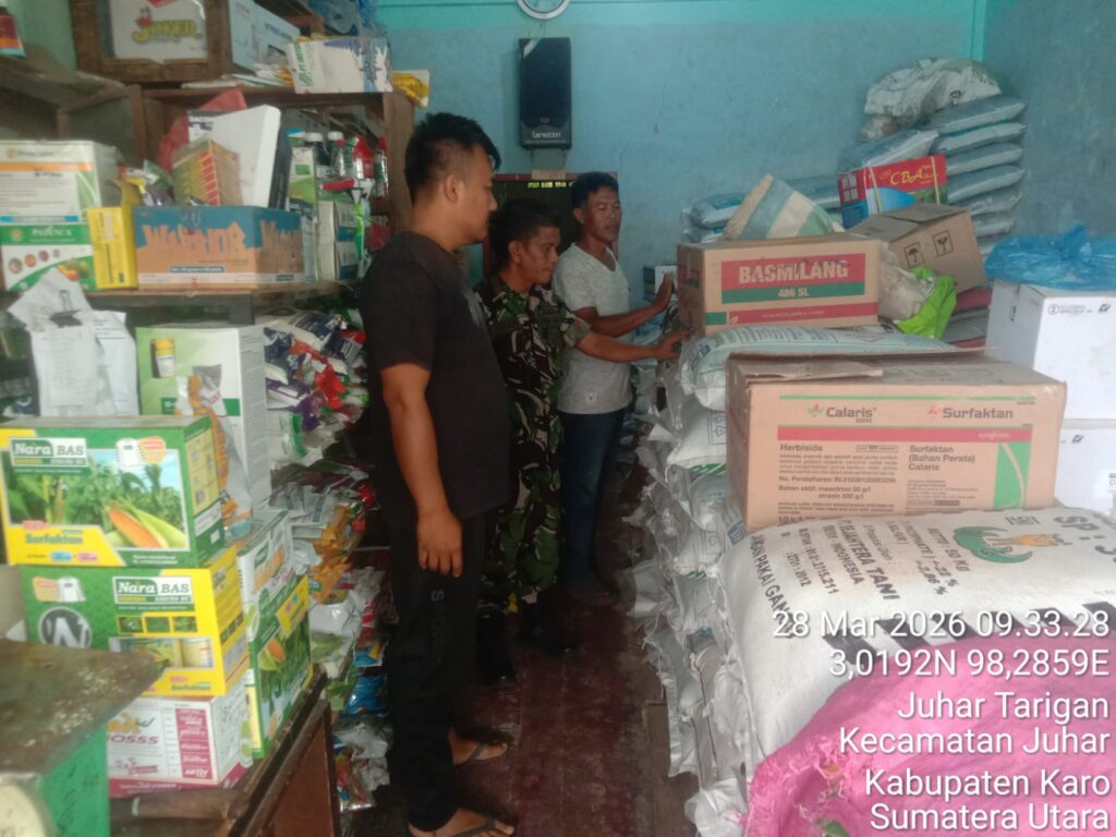 Babinsa Koramil 07 Juhar Monitoring Ketersediaan Pupuk Bersubsidi dan Obat Tanaman