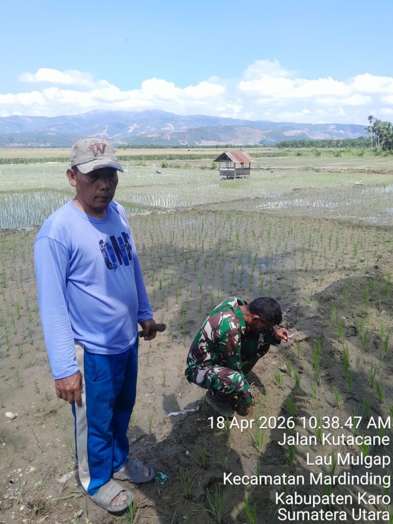 Babinsa Koramil 09 Lau Baleng Komsos Bersama Petani Pengecekan dan Perawatan Padi