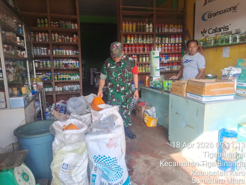 Babinsa Koramil 08 Tiga Binanga Monitoring Ketersediaan Pupuk Bersubsidi dan Obat Tanaman