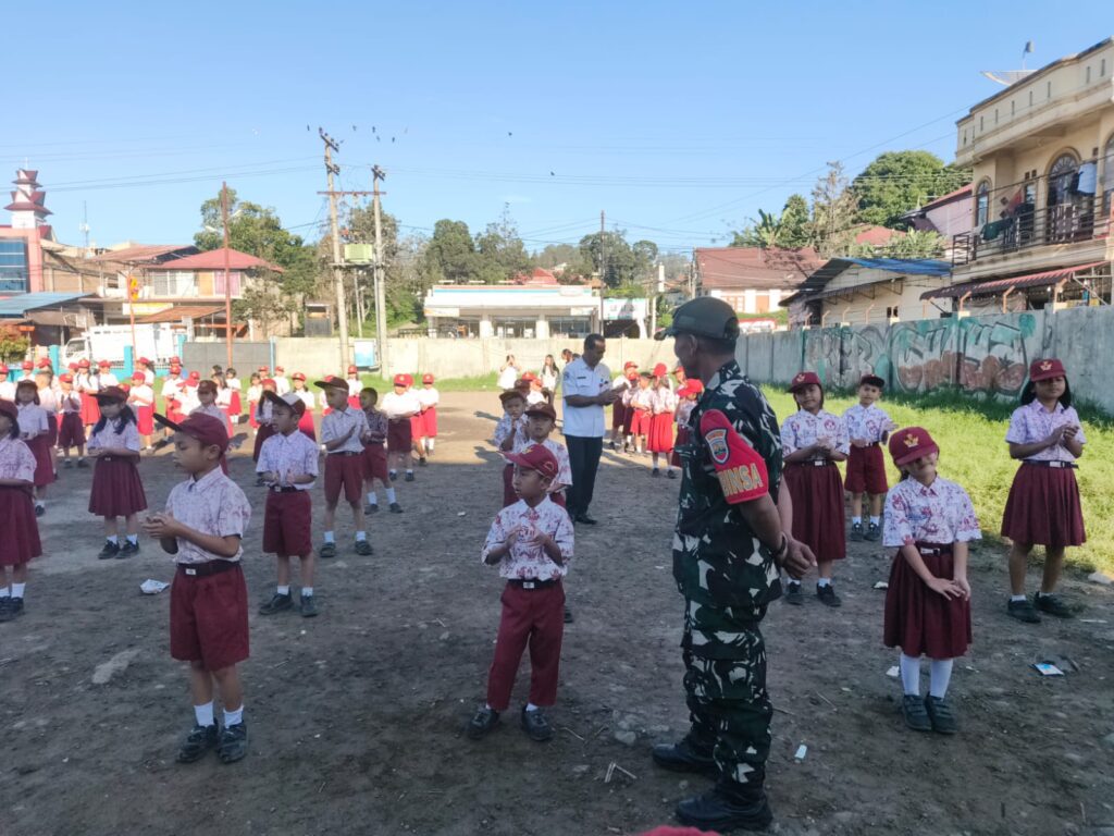 Babinsa Koramil 03 Berastagi Ajarkan Wasbang Cinta Tanah Air Pada Siswa SD
