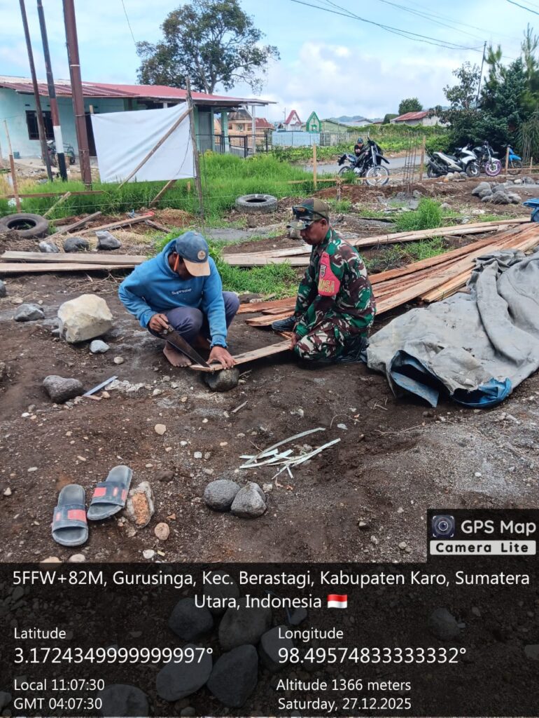 Karo, Jurnaliskaro.com,- Untuk mendukung program pemerintah, Koramil 03 Berastagi Kodim 0205 Tanah Karo melaksanakan kegiatan pendampingan pembangunan gedung Koperasi Merah Putih di Desa Guru Singa Kec. Berastagi, Sabtu (27/12/2025) siang.