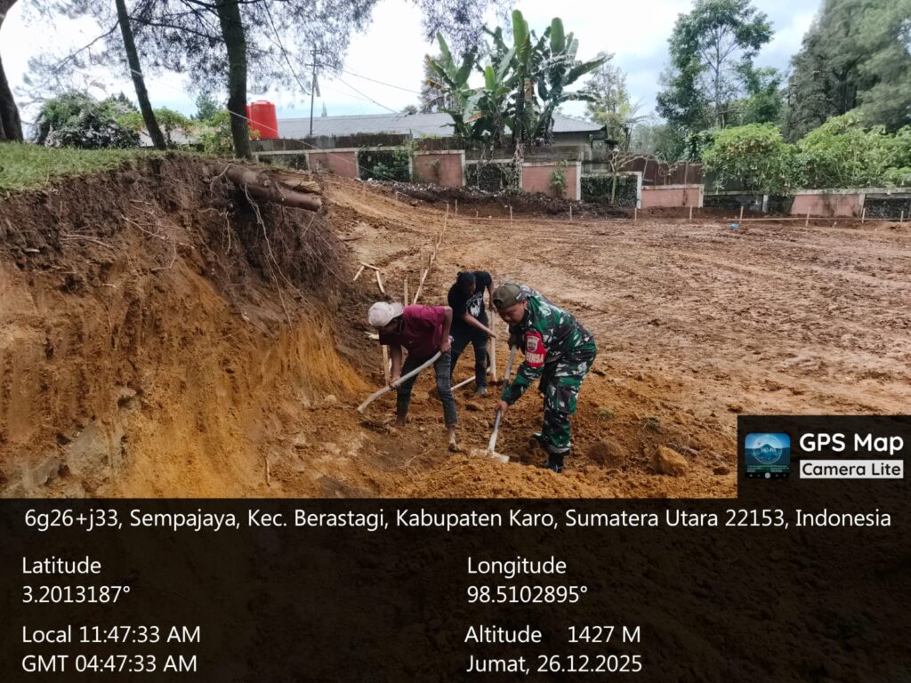 Karo, Jurnaliskaro.com,- Untuk mendukung program pemerintah, Koramil 03 Berastagi Kodim 0205 Tanah Karo melaksanakan kegiatan pendampingan pembangunan gedung Koperasi Merah Putih di Desa Lau Gumba Kec. Berastagi, Jumat (26/12/2025) siang.