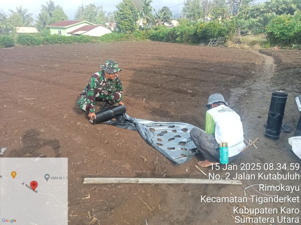 Karo, Jurnaliskaro.com,- Dukung Program Pemerintah dalam Bidang Ketahanan Pangan, Koramil 05 Payung Kodim 0205 Tanah Karo laksanakan giat pendampingan pengecekan dan penanaman pada lahan pertanian tanaman bawang milik Indra Ginting di Desa Tiga Nderket Kec. Tiga Nderket, Kab. Karo, Rabu (15/01/2025) siang.