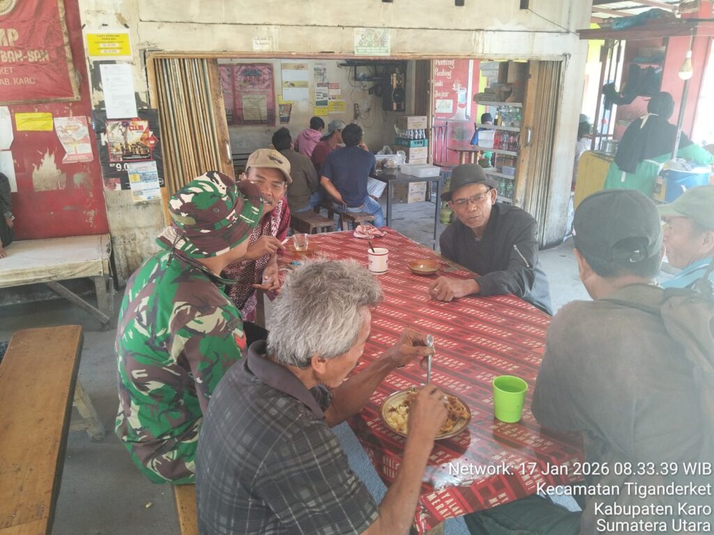 Karo, Jurnaliskaro.com,- Untuk menciptakan situasi yang aman, kondusif dan bersih, Koramil 05 Payung Kodim 0205 Tanah Karo melaksanakan Komunikasi Sosial (Komsos) bersama warga di Desa Tiga Nderket Kec. Tiga Nderket, Karo, Sabtu (17/01/2026) siang.