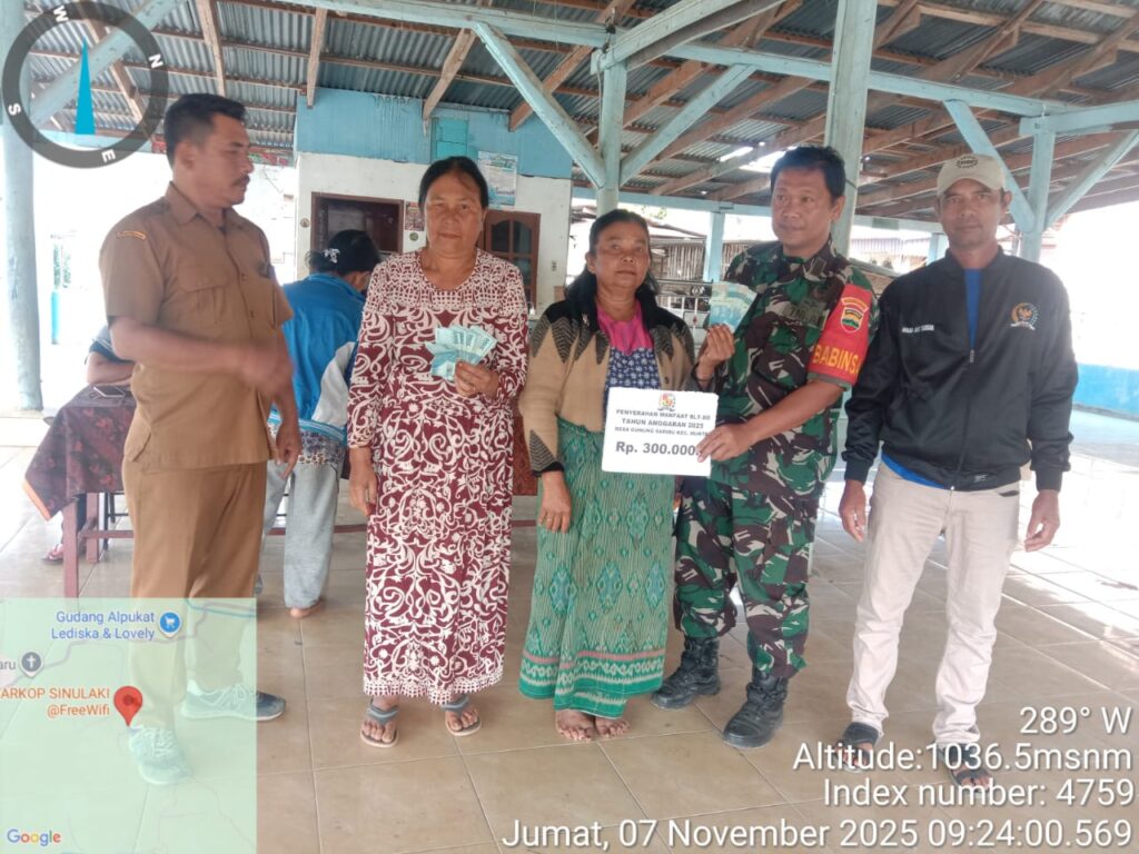 Karo, Jurnaliskaro.com,- Koramil 06 Munte Kodim 0205 Tanah Karo, melaksanakan kegiatan pendampingan pengamanan dan monitoring kepada masyarakat yang akan menerima Bantuan Langsung Tunai (BLT) Dana Desa di Kantor Desa Gunung Saribu Kec. Munte, Jumat (07/11/2025) pagi.