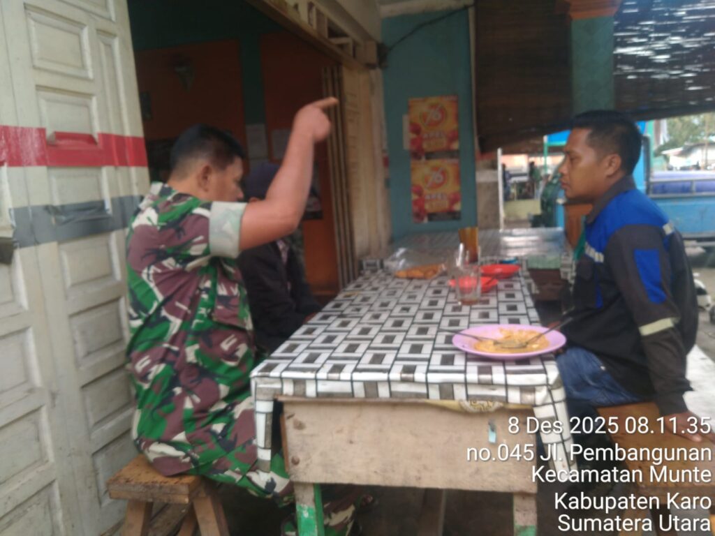 Karo, Jurnaliskaro.com,- Untuk menciptakan situasi yang aman, kondusif dan bersih, Koramil 06 Munte Kodim 0205 Tanah Karo melaksanakan Komunikasi Sosial (Komsos) bersama warga di Desa Munte Kec. Munte, Karo, Senin (08/12/2025) siang.