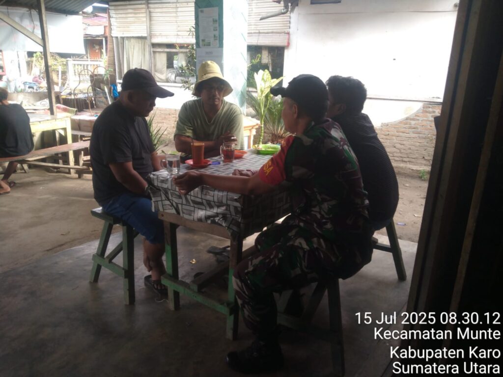 Karo, Jurnaliskaro.com,- Untuk menciptakan situasi yang aman, Koramil 06 Munte Kodim 0205 Tanah Karo melaksanakan Komunikasi Sosial (Komsos) di Desa Munte Kec. Munte, Selasa (15/07/2025) siang.