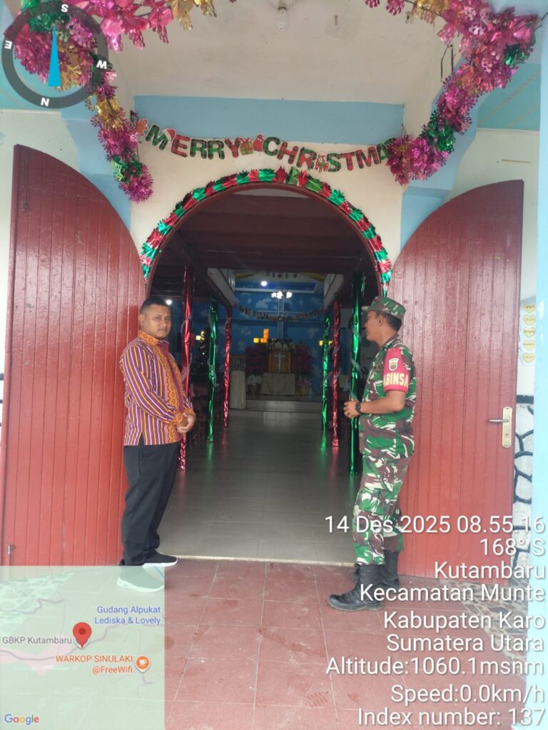Karo, Jurnaliskaro.com,- Untuk menciptakan suasana yang nyaman dan aman selama beribadah, Babinsa Koramil 06 Munte Kodim 0205 Tanah Karo, bersama dengan personil Babinsa yang lain, melaksanakan kegiatan pengamanan kegiatan ibadah di Gereja GBKP Kutambaru di Desa Kutambaru Kec. Munte, Kab. Karo, Minggu (14/12/2025) pagi.