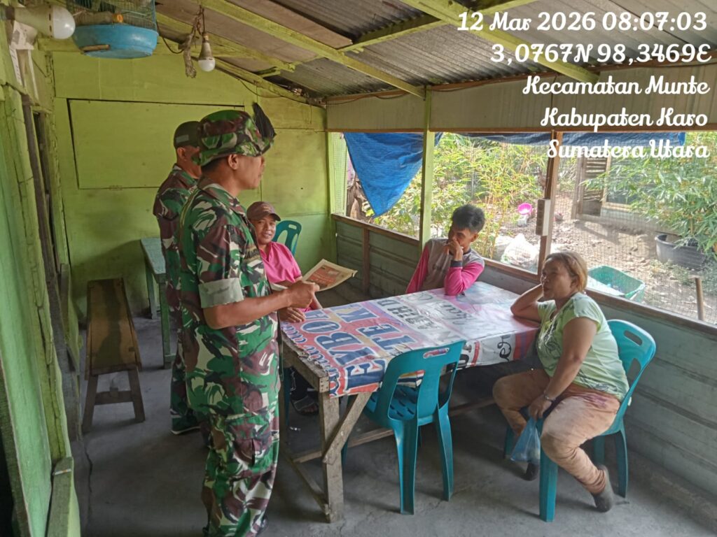 Karo, Jurnaliskaro.com, – Jalin kebersamaan dan silaturahmi, Koramil 06 Munte Kodim 0205 Tanah Karo melaksanakan kegiatan sosialisasi penerimaan keanggotaan Komponen Cadangan (Komcad) dengan masyarakat binaan di Desa Munte Kec. Munte, Kamis (12/03/2026) pagi.