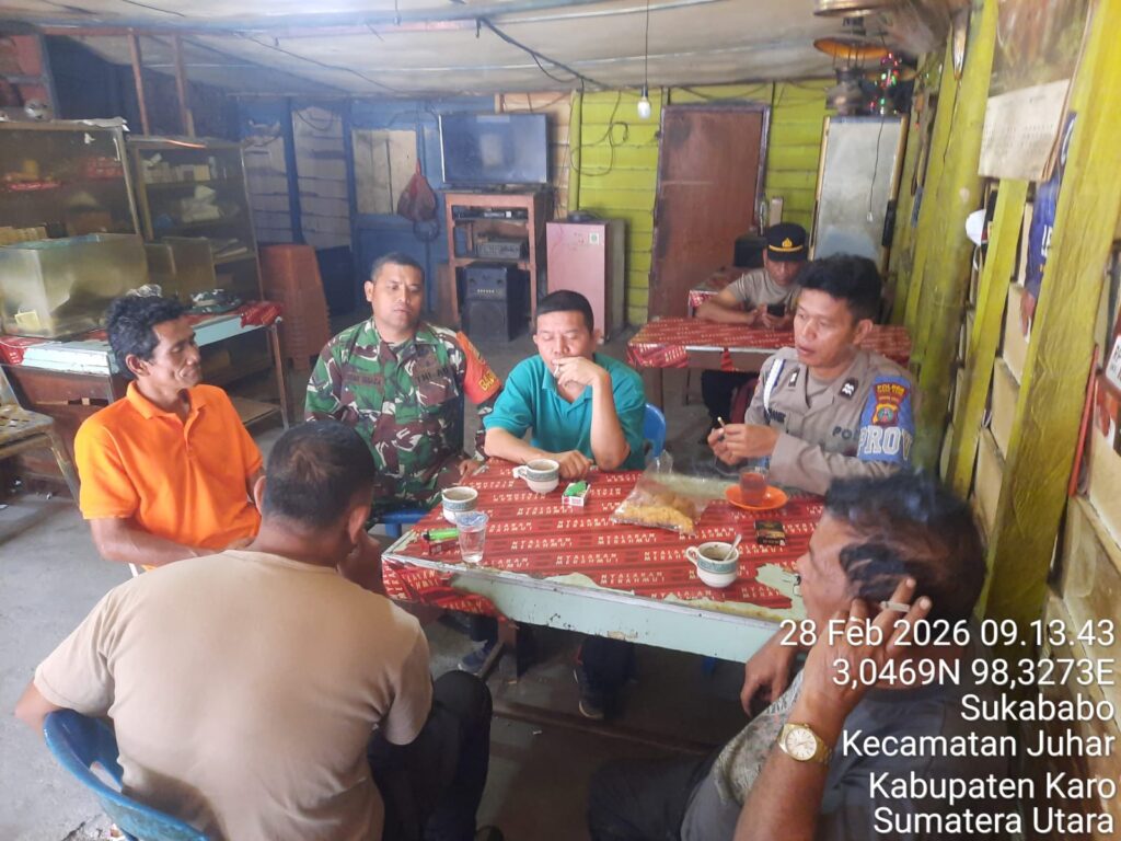 Karo, Jurnaliskaro.com,- Untuk menciptakan situasi yang aman, kondusif dan bersih, Koramil 07 Juhar Kodim 0205 Tanah Karo melaksanakan Komunikasi Sosial (Komsos) bersama warga di Desa Sukababo Kec. Juhar, Karo, Sabtu (28/02/2026) siang.