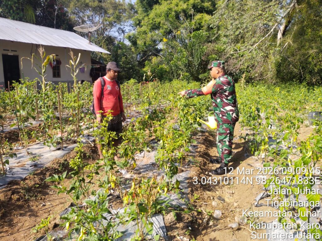 Karo, Jurnaliskaro.com,- Dukung Program Pemerintah dalam Bidang Ketahanan Pangan, Koramil 07 Juhar Kodim 0205 Tanah Karo laksanakan giat pendampingan pertanian di Desa Keriahen Kec. Juhar, Kab. Karo, Kamis (12/03/2026) siang.