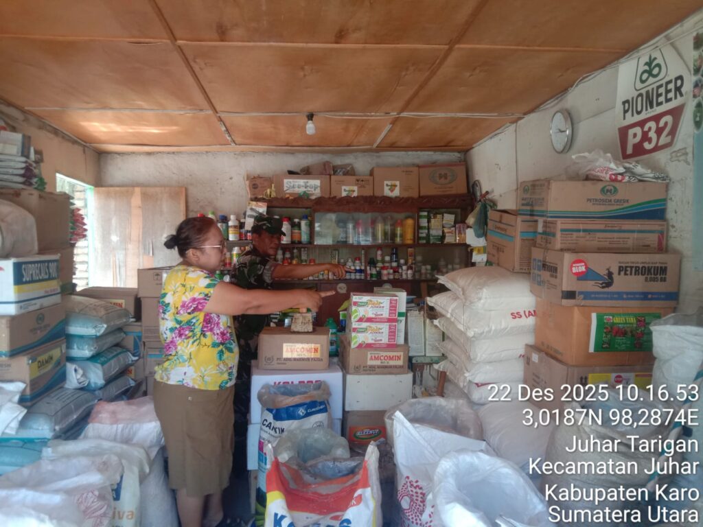 Karo, Jurnaliskaro.com,- Dalam rangka mendukung program pemerintah dalam bidang ketahanan pangan, Koramil 07 Juhar Kodim 0205 Tanah Karo melaksanakan kegiatan pengecekan ketersediaan pupuk bersubsidi dan non subsidi serta obat obatan tanaman pertanian di Desa Juhar Tarigan di Kec. Juhar, Senin (22/12/2025) siang.