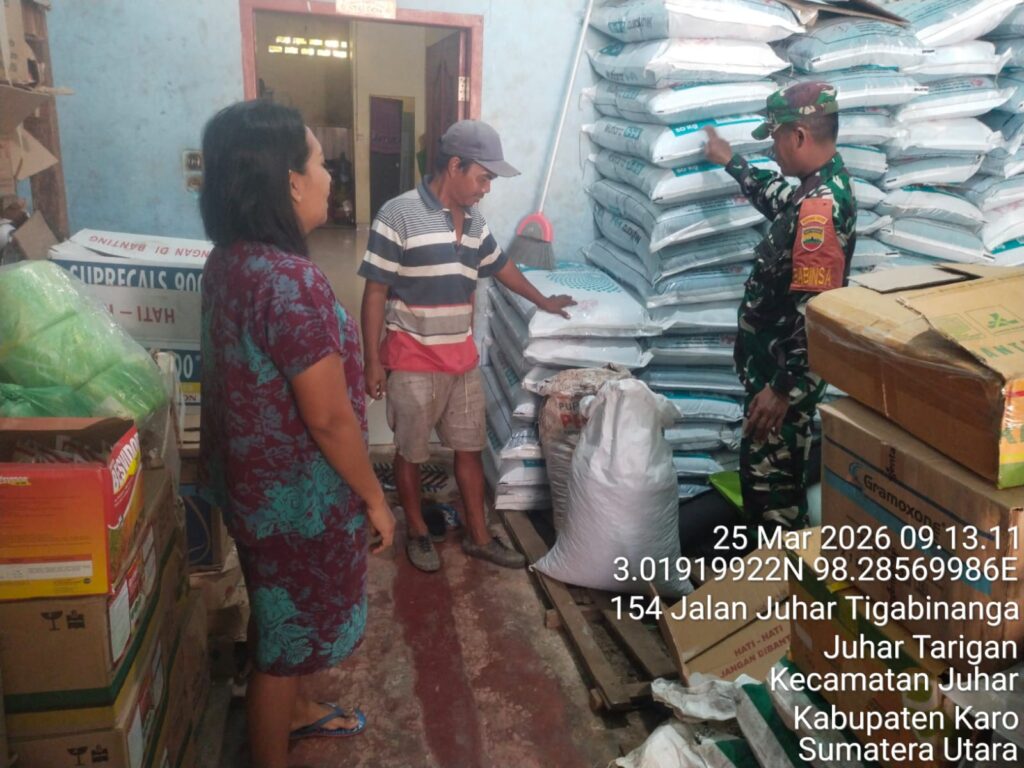 Karo, Jurnaliskaro.com,- Dalam rangka mendukung program pemerintah dalam bidang ketahanan pangan, Koramil 07 Juhar Kodim 0205 Tanah Karo melaksanakan kegiatan pengecekan ketersediaan pupuk bersubsidi dan non subsidi serta obat obatan tanaman pertanian di toko pupuk di Desa Juhar Tarigan Kec. Juhar, Rabu (25/03/2026) siang.