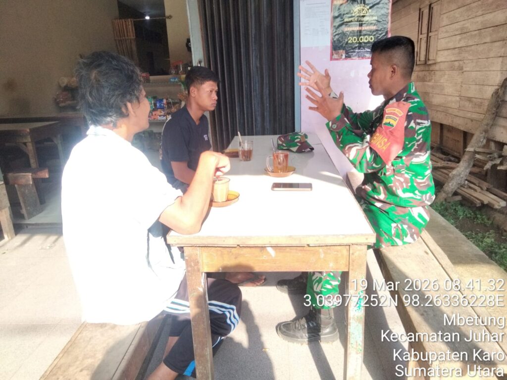 Karo, Jurnaliskaro.com, – Jalin kebersamaan dan silaturahmi, Koramil 07 Juhar Kodim 0205 Tanah Karo melaksanakan kegiatan sosialisasi penerimaan keanggotaan Komponen Cadangan (Komcad) dengan masyarakat binaan di Desa Mbetung Kec. Juhar, Kamis (19/03/2026) pagi.
