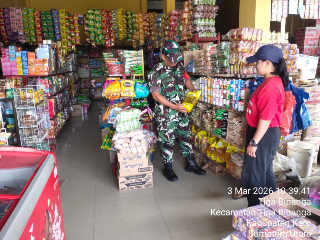 Karo, Jurnaliskaro.com,- Guna memastikan ketersediaan stok sembako, Koramil 08 Tiga Binanga Kodim 0205 Tanah Karo untuk memantau stok ketersediaan sembako di Kel. Tiga Binanga Kec. Tiga Binanga, Kab. Karo, Selasa (03/03/2026) siang.