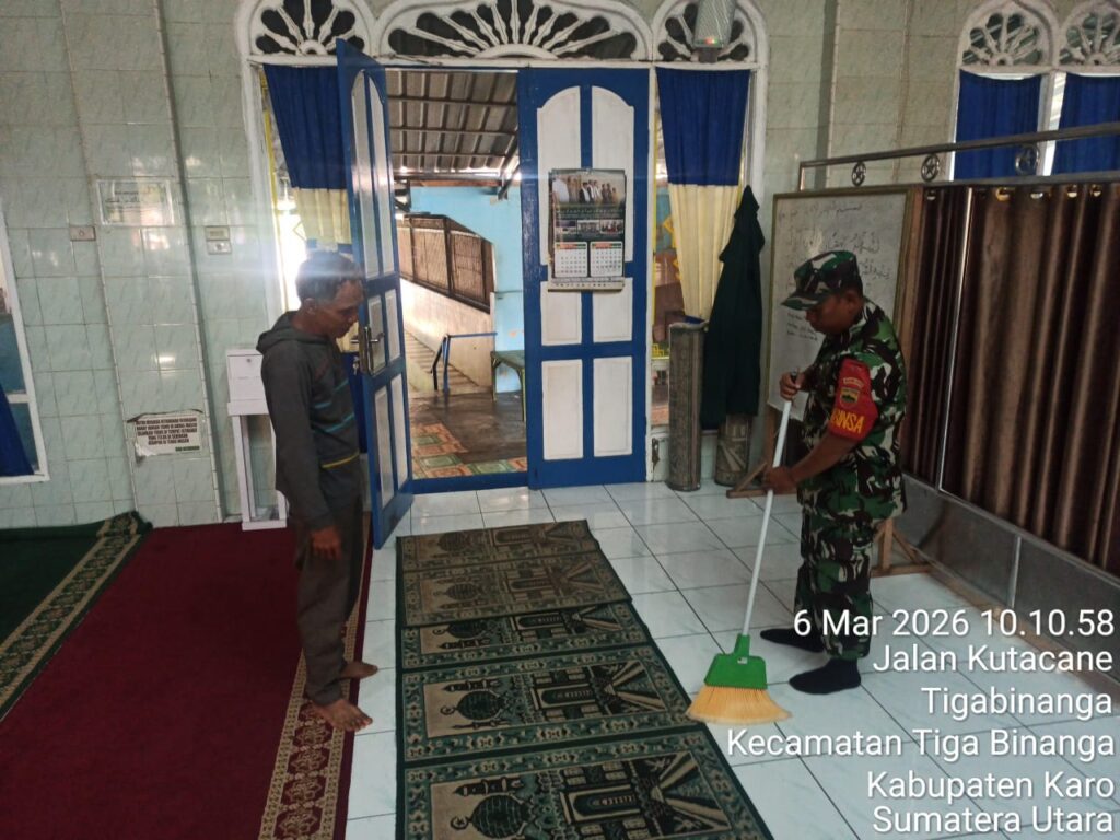 Karo, Jurnaliskaro.com,- Ciptakan lingkungan yang nyaman, bersih dan sehat, Koramil 08 Tiga Binanga Kodim 0205 Tanah Karo bersama masyarakat melaksanakan kegiatan bersih bersih Mesjid Istiqomah di Kel. Tiga Binanga Kec. Tiga Binanga, Jumat (06/03/2026) pagi.