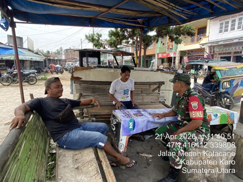 Karo, Jurnaliskaro.com,- Untuk menciptakan situasi yang aman, kondusif dan bersih, Koramil 08 Tiga Binanga Kodim 0205 Tanah Karo melaksanakan Komunikasi Sosial (Komsos) bersama warga di Kel. Tiga Binanga Kec. Tiga Binanga, Karo, Selasa (21/04/2026) siang.