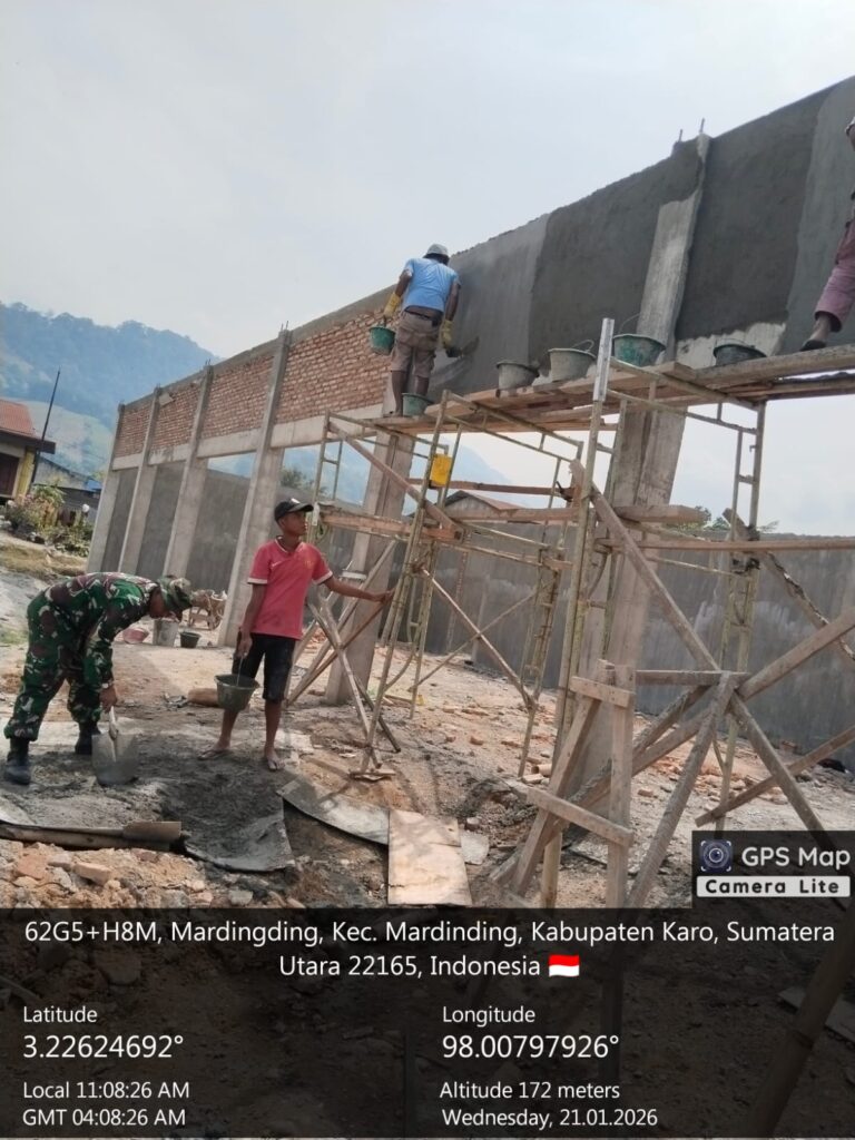 Karo, Jurnaliskaro.com,- Untuk mendukung program pemerintah, Koramil 09 Lau Baleng Kodim 0205 Tanah Karo melaksanakan kegiatan pendampingan pembangunan gedung Koperasi Merah Putih di Desa Mardinding Kec. Mardinding, Rabu (21/01/2026) siang.