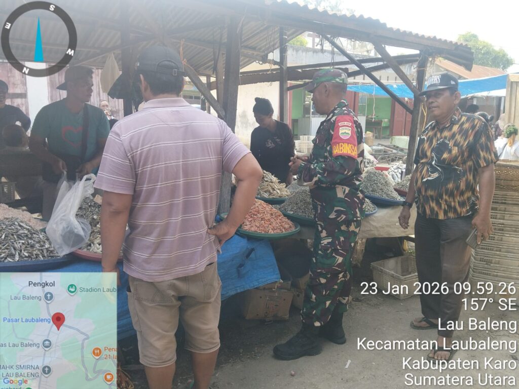 Karo, Jurnaliskaro.com,- Guna memastikan ketersediaan stok sembako, Koramil 09 Lau Baleng Kodim 0205 Tanah Karo untuk memantau stok ketersediaan sembako di Pasar Tradisional di Kel. Lau Baleng Kec. Lau Baleng, Kab. Karo, Jumat (23/01/2026) siang.