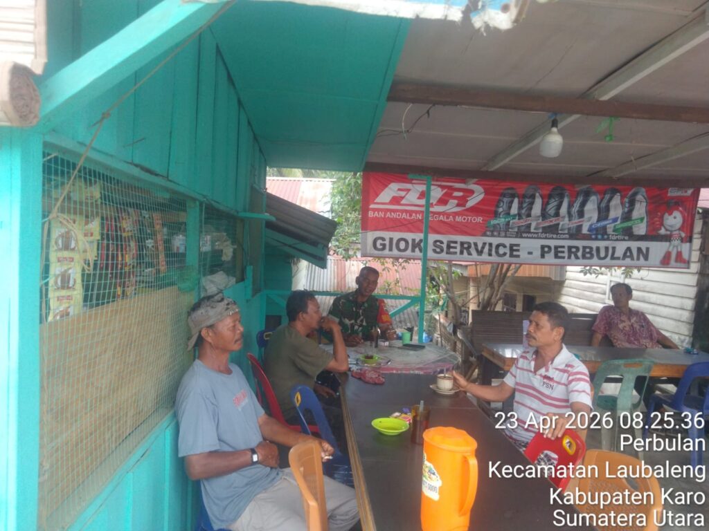 Karo, Jurnaliskaro.com,- Untuk menciptakan situasi yang aman, kondusif dan bersih, Koramil 09 Lau Baleng Kodim 0205 Tanah Karo melaksanakan Komunikasi Sosial (Komsos) bersama warga di Desa Perbulan Kec. Lau Baleng, Karo, Kamis (23/04/2026) siang.