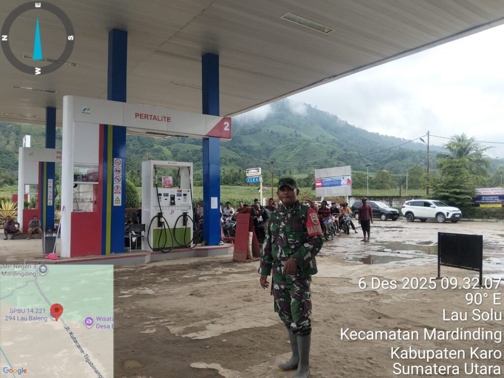 Karo, Jurnaliskaro.com,- Dalam rangka menjalin sinergitas dan menjaga keamanan dan kenyamanan warga, Koramil 09 Lau Baleng Kodim 0205 Tanah Karo melaksanakan kegiatan pengamanan SPBU di Desa Buluh Pancur Kec. Lau Baleng, Sabtu (06/12/2025) siang.