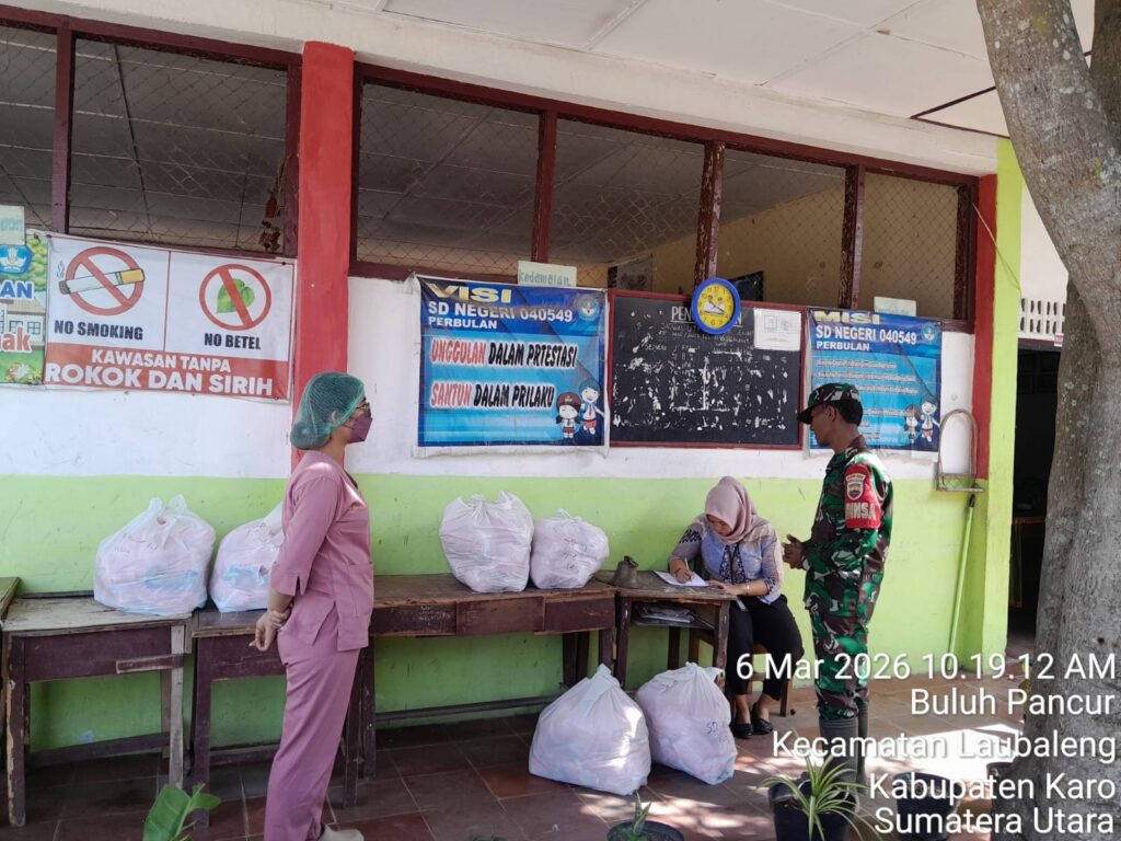 Karo, Jurnaliskaro.com,- Dalam rangka menjalin sinergitas dan mendukung program pemerintah dalam bidang makanan bergizi, Koramil 09 Lau Baleng Kodim 0205 Tanah Karo melaksanakan kegiatan monitoring pendistribusian Makanan Bergizi Gratis oleh Satuan Pelayanan Pemenuhan Gizi (SPPG) di Desa Buluh Pancur Kec. Lau Baleng, Kab. Karo, Jumat (06/03/2026) pagi.