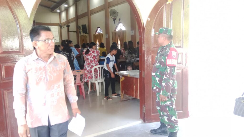 Karo, Jurnaliskaro.com,- Untuk menciptakan suasana yang nyaman dan aman selama beribadah, Babinsa Koramil 09 Lau Baleng Kodim 0205 Tanah Karo, melaksanakan kegiatan pengamanan kegiatan ibadah di gereja GBKP di Desa Lau Baleng Kec. Lau Baleng, Kab. Karo, Minggu (12/04/2026) pagi.